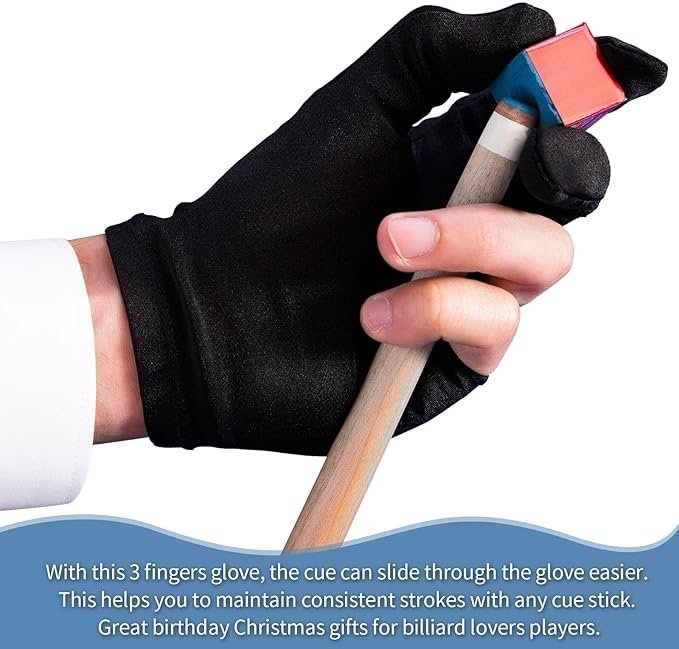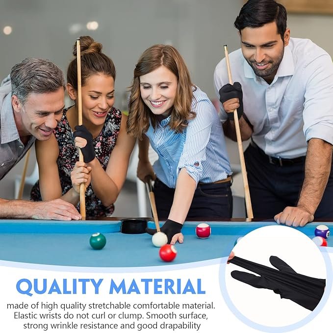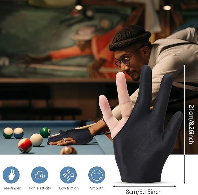 - 3-Fingers design: the nylon billiard gloves are designed into the 3 fingers gloves, which can give your fingers more air flow, suitable for sweaty hands and humid weather, reduce the friction between the rod and fingers and offer more comfort and flexibility to your fingers