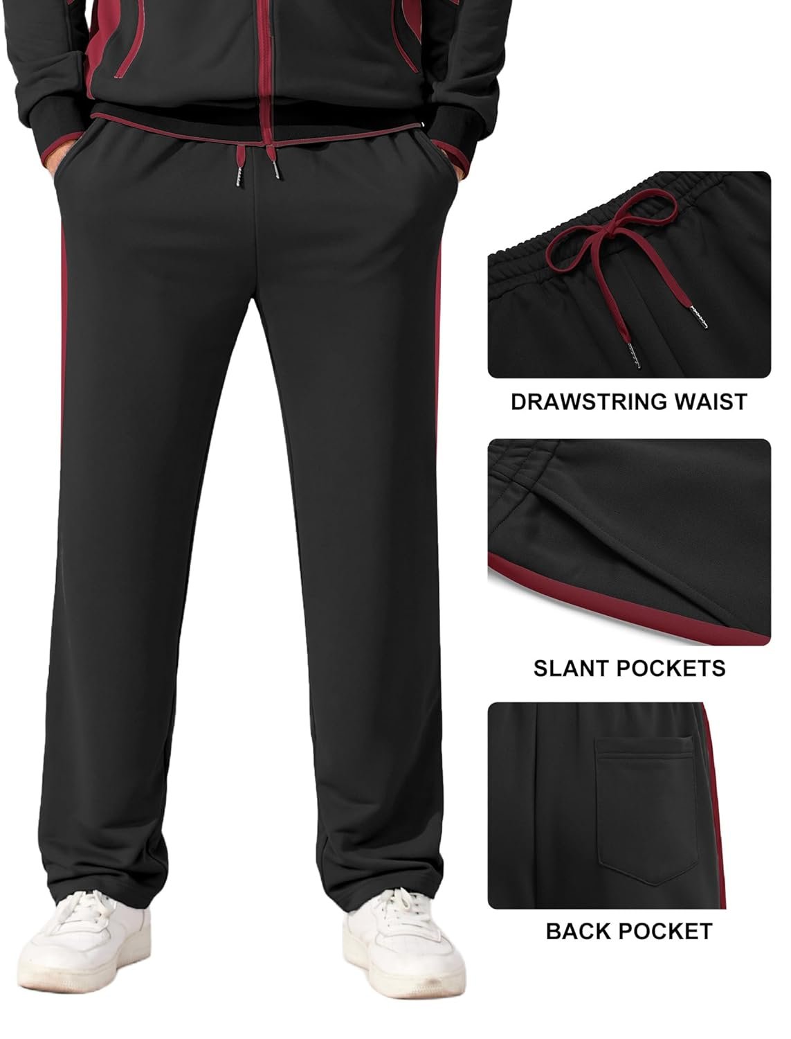 - DRAWSTRING SWEATPANTS – Jogging sweat suit straight-leg pants with two slant pockets, adjustable elastic waistband ensures a secure and customizable fit. Running track suit with sporty cut enhances mobility while maintaining a sleek, put-together look.