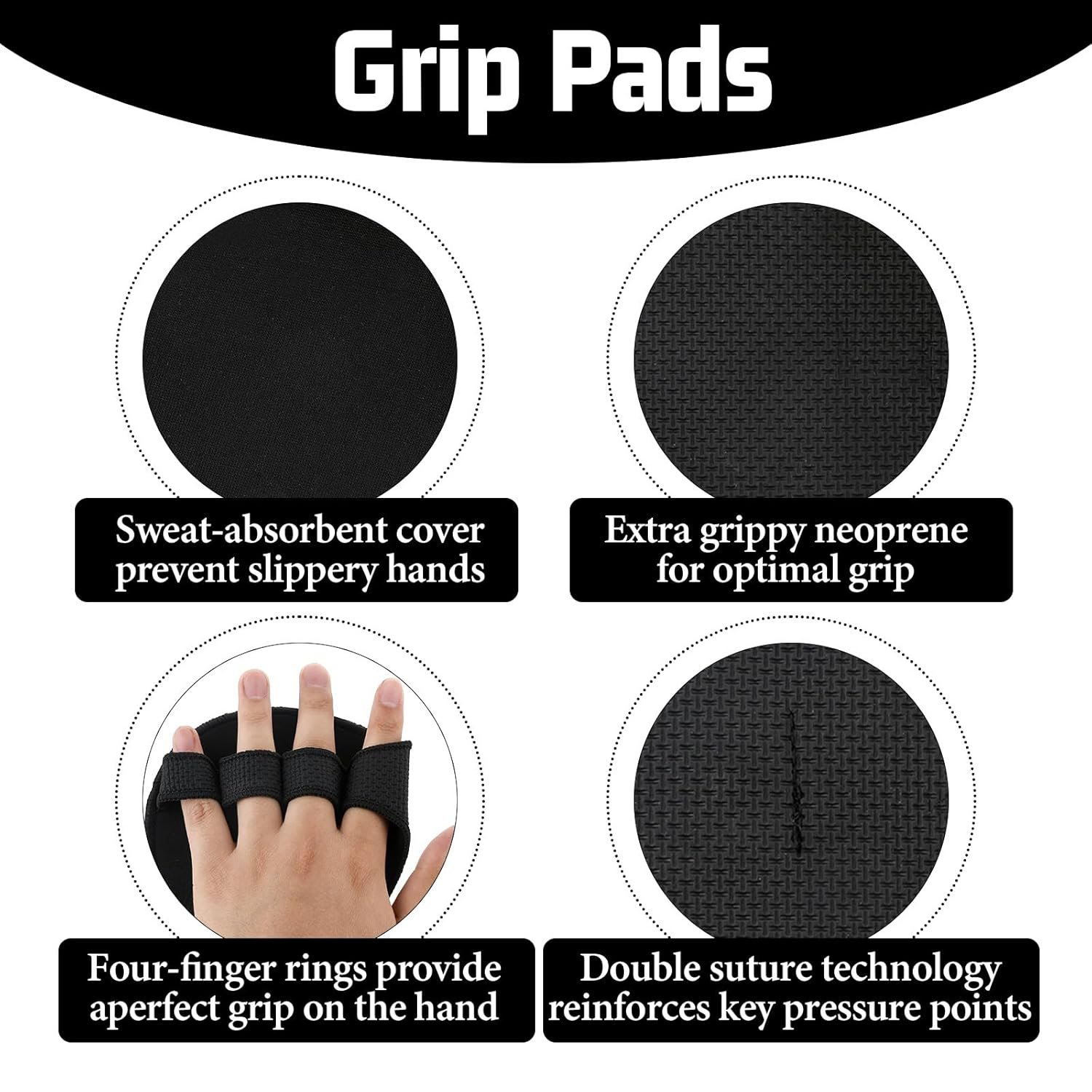 - 【 One Size Fits All】One size fits all women and men. The workout grip pads have four eyelets for the fingers which ensure a perfect grip on the hands and additionally absorb sweat
