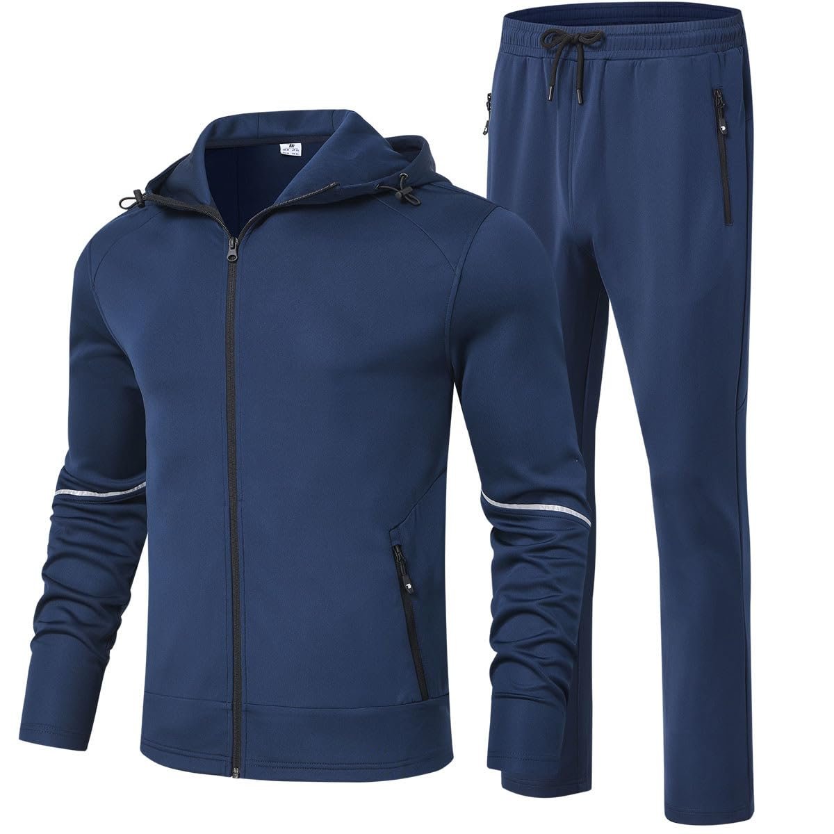 - Tracksuit Design:Full zip jacket,straight-leg pants.The jogging suits features hoodie,long sleeve,reflective design,4 zippered pockets,ribbed hem and cuffs
