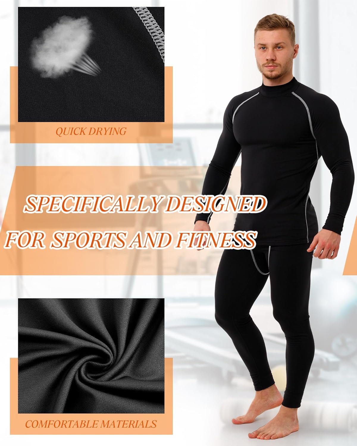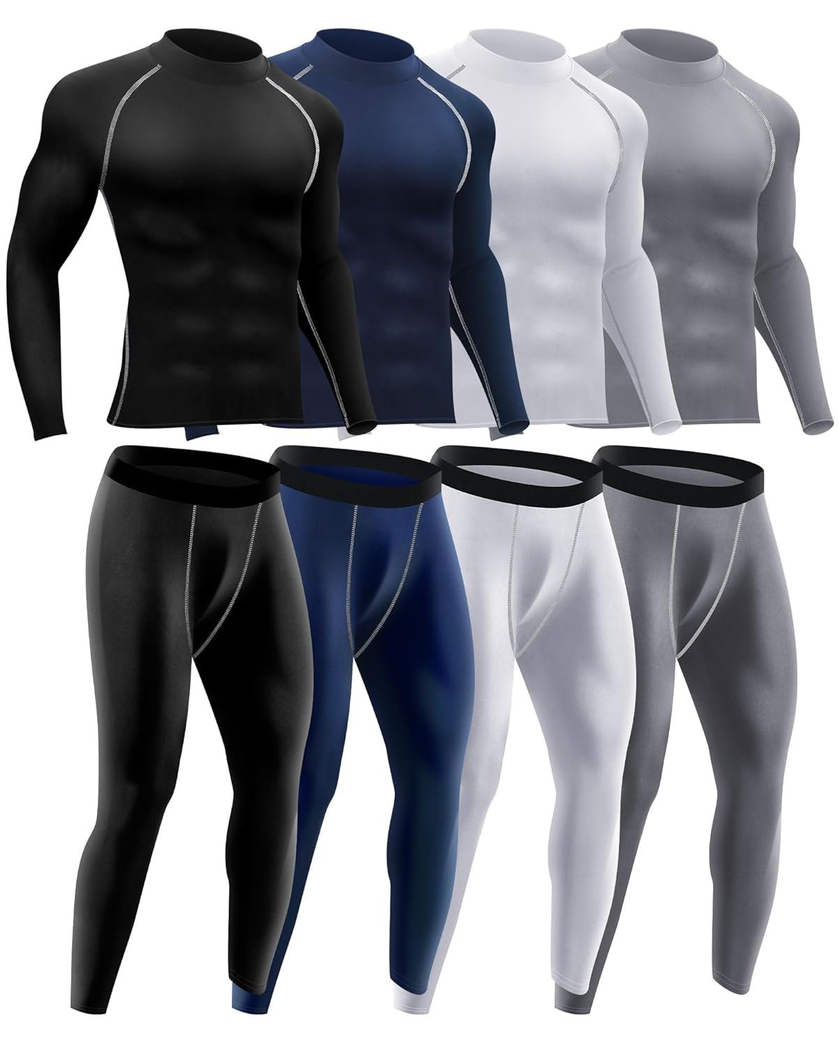 - Flexibility in Every Move: these men’s compression shirt set stands out with its 4 way stretch feature and sturdy seaming; The workout and compression set wrap your body snugly, whether you’re exercising or relaxing, without restricting your range of motion; The design optimizes both comfort and flexibility, making these undergarments conducive to any form of movement