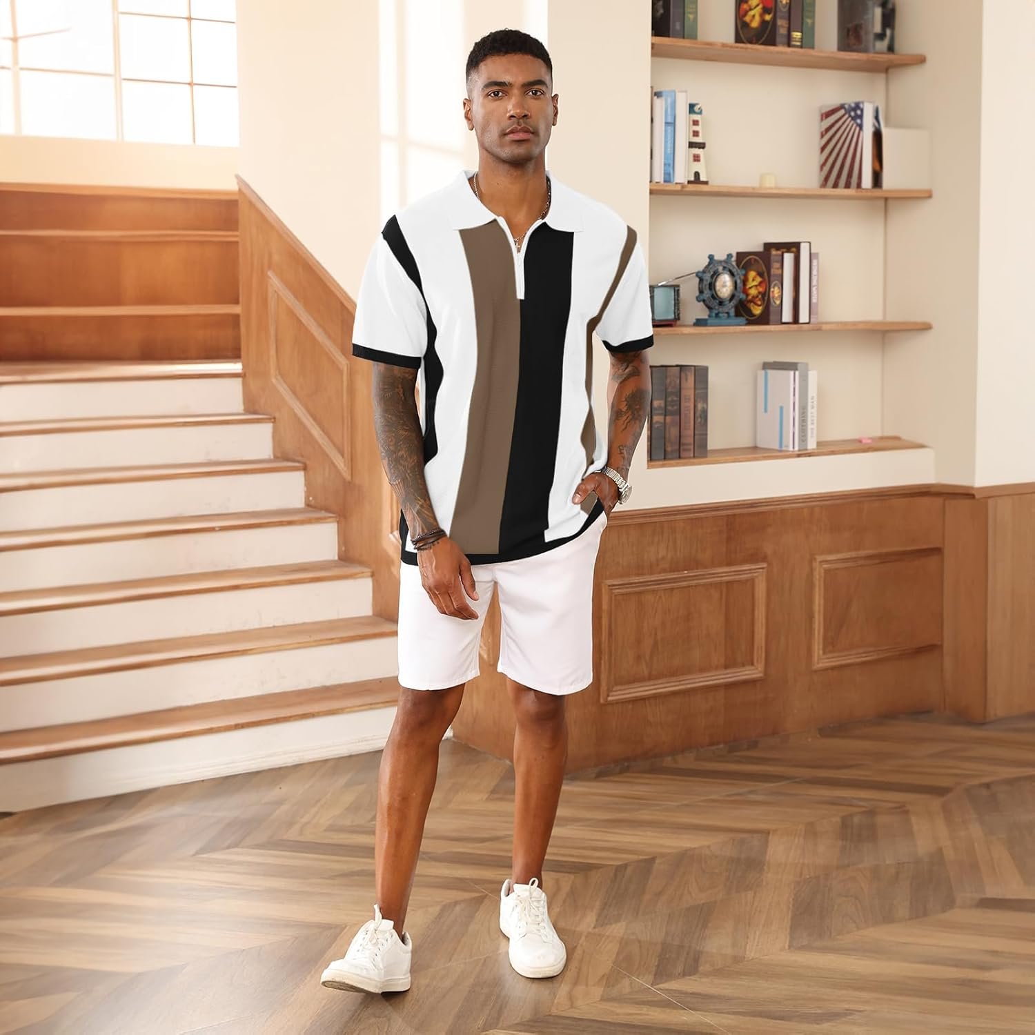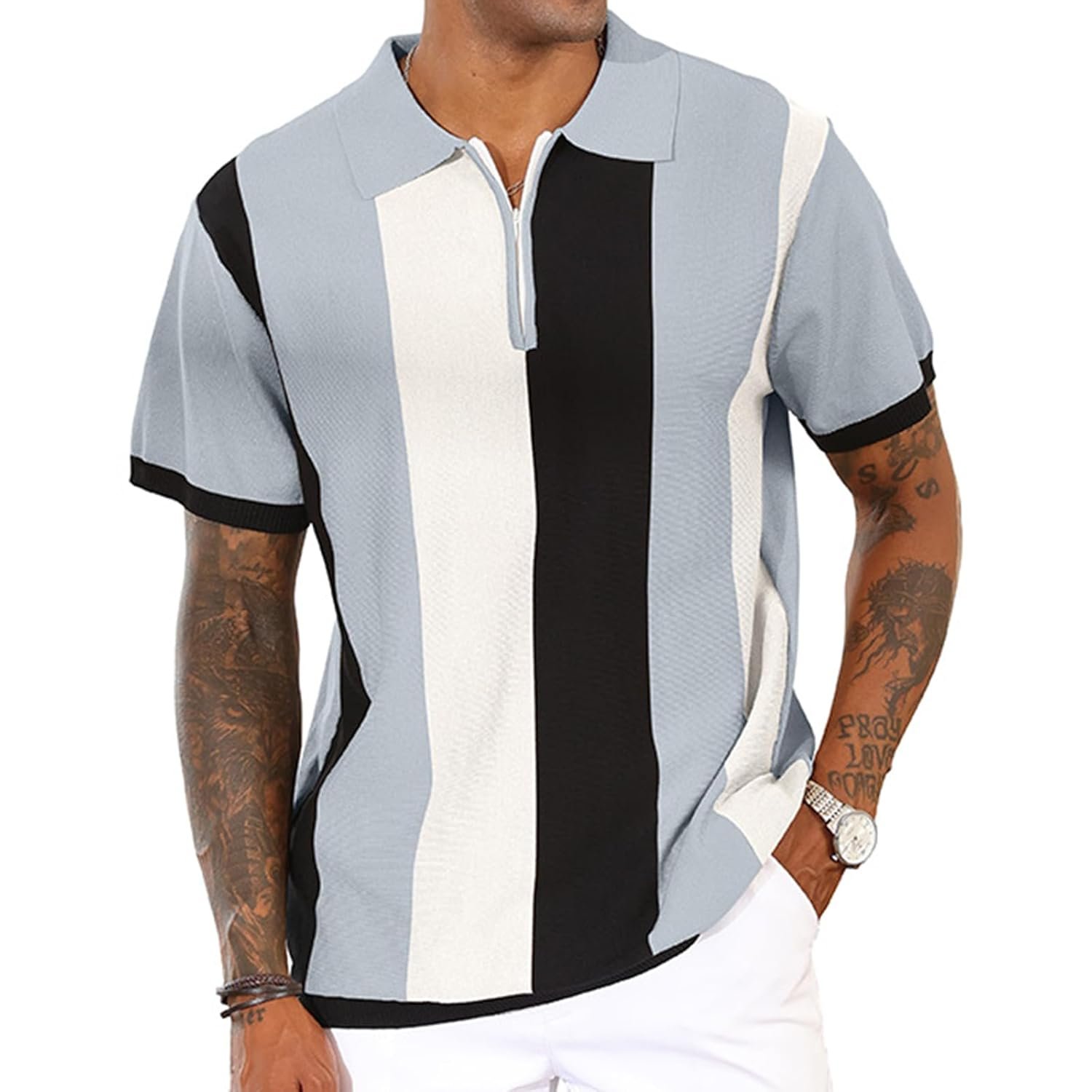 Men’s Fashion Polo Shirts Vintage Striped Knitting Shirts Casual Slim Fit Golf Shirts