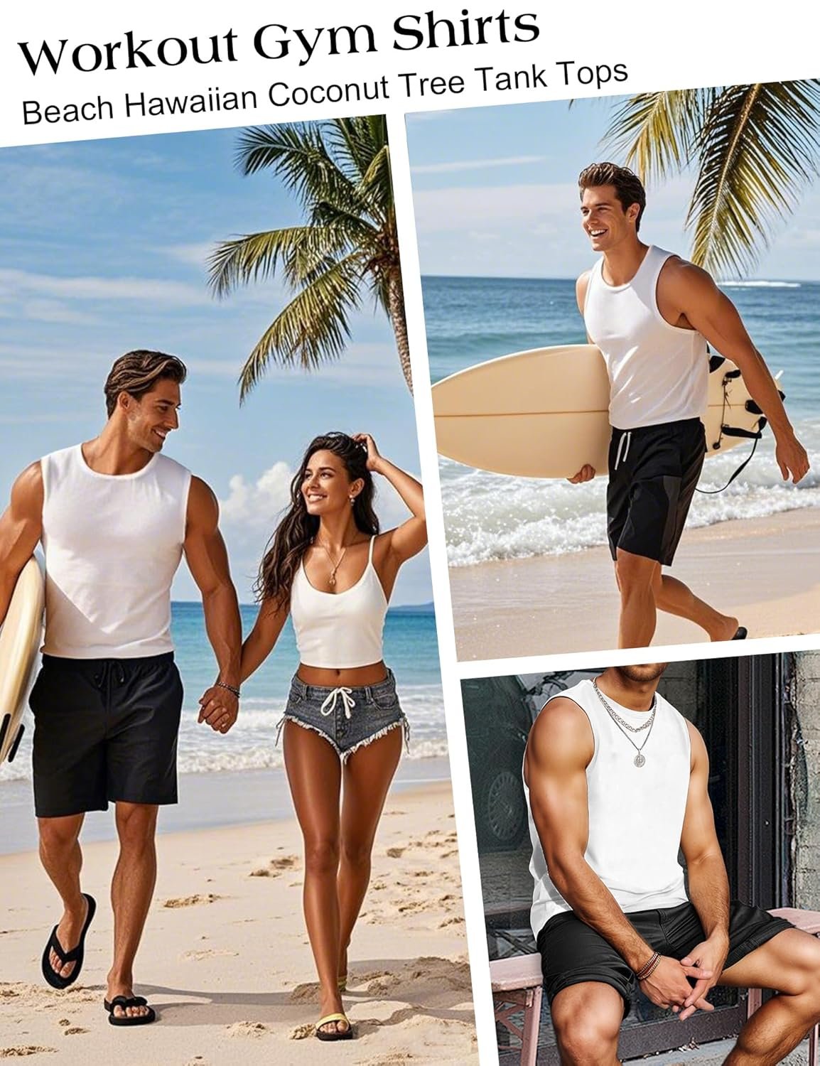 Mens Graphic Tank Tops Workout Sleeveless Shirts Hawaiian Palm Tree Vacation Tanks for Men Summer Beach T-Shirt