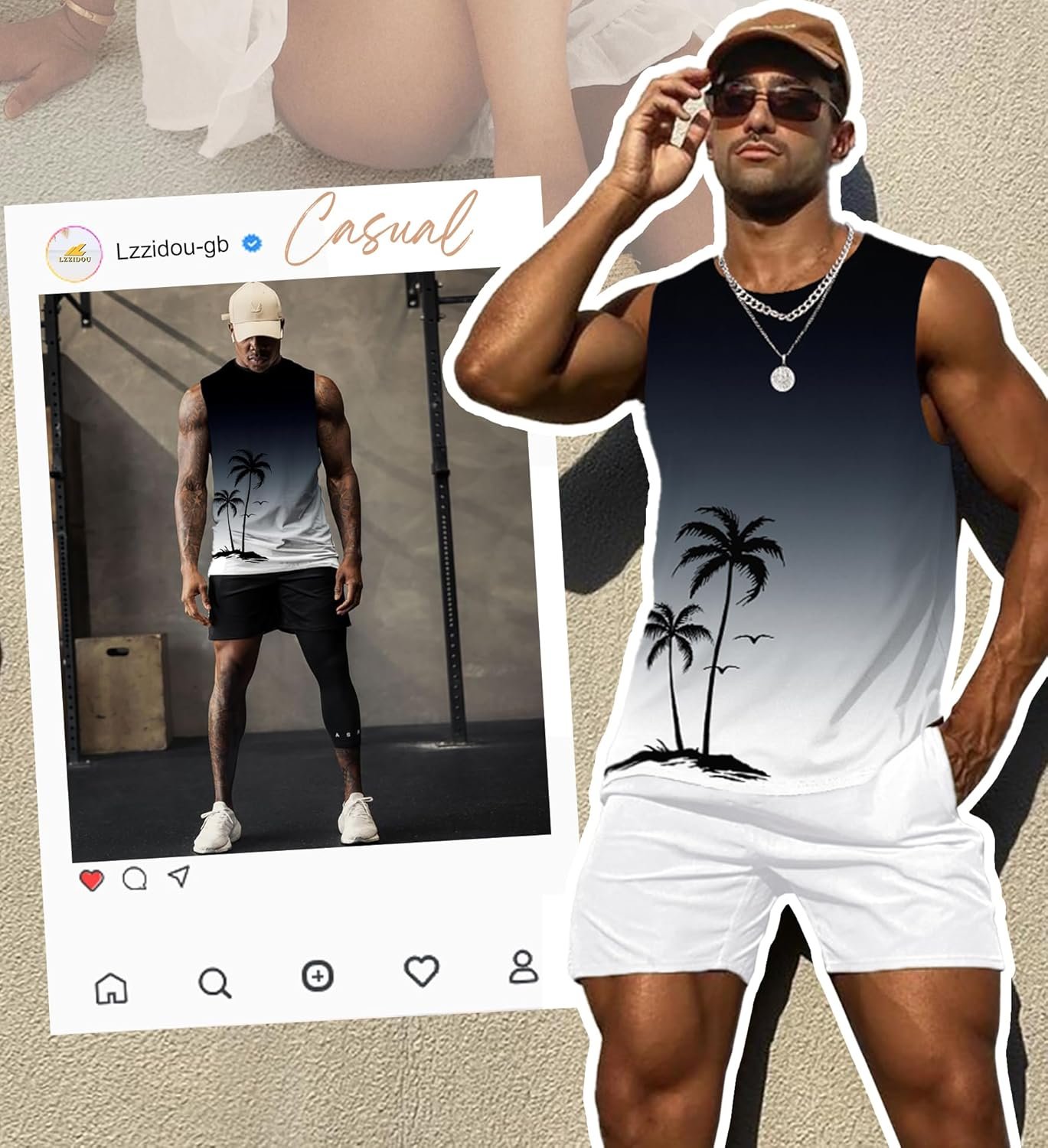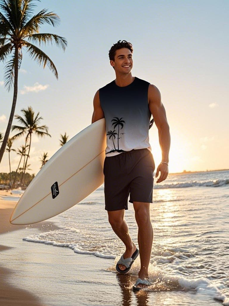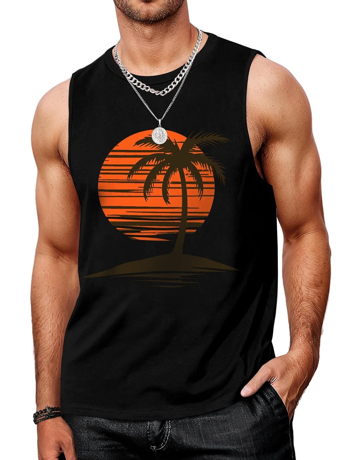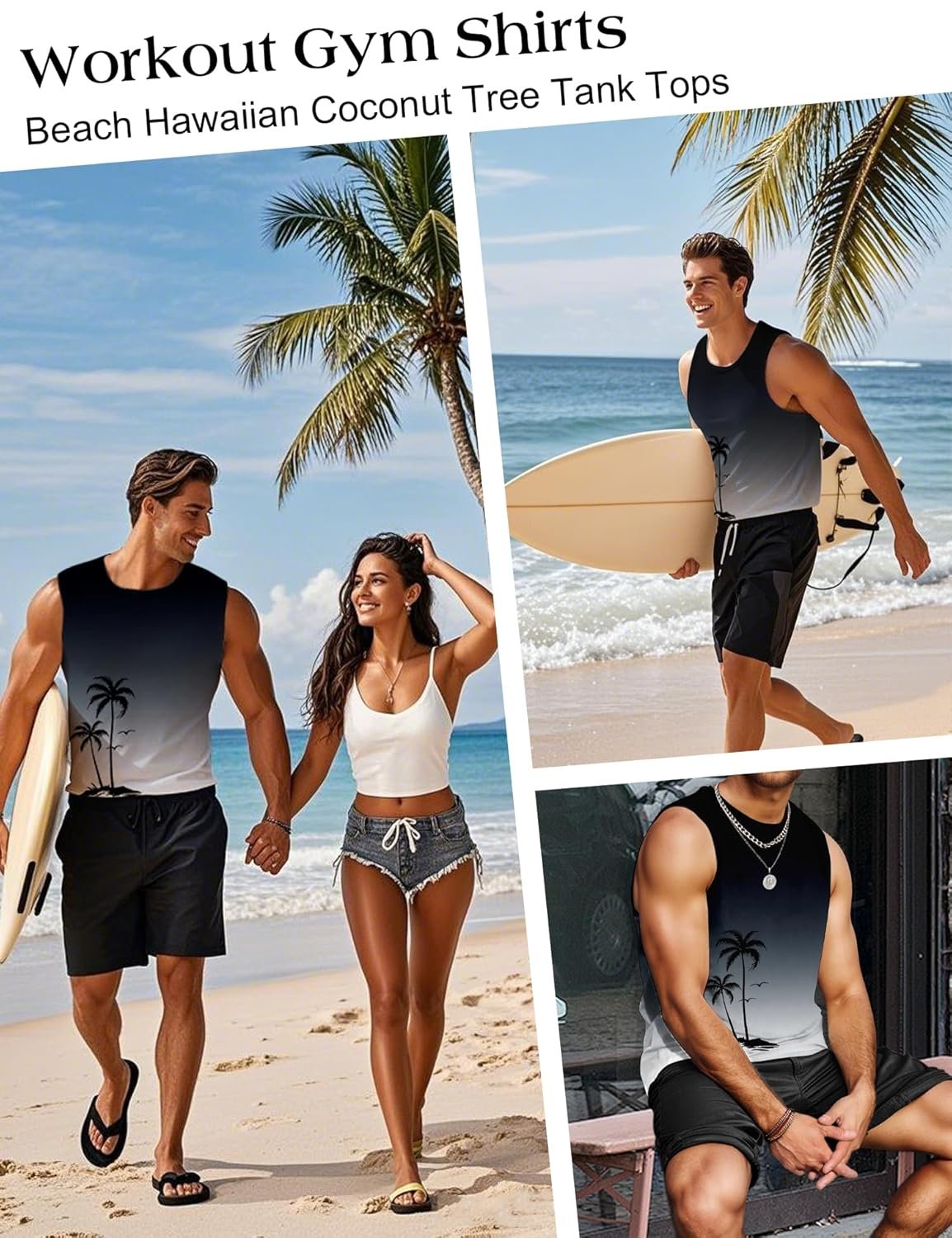- Colorful Printed: Casual summer mens tanks top with hawaiian graphic such as palm trees and gradient themes bring a touch of tropical beach vacation to your wardrobe. The tank top can be paired with workout shorts, leisure chinos, bermuda, jeans, sweat pants, jogging pants