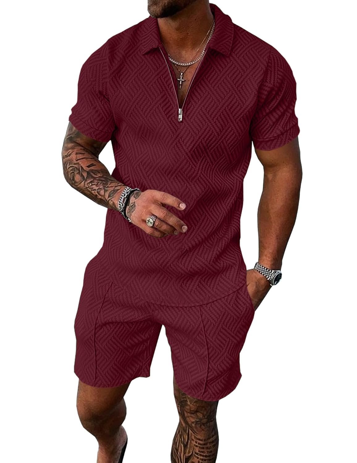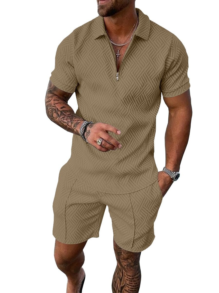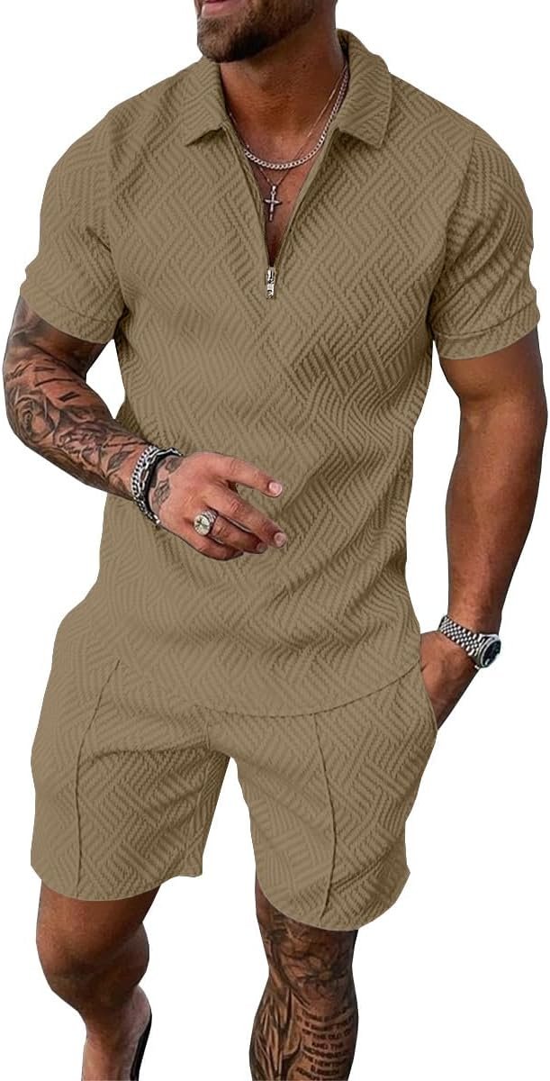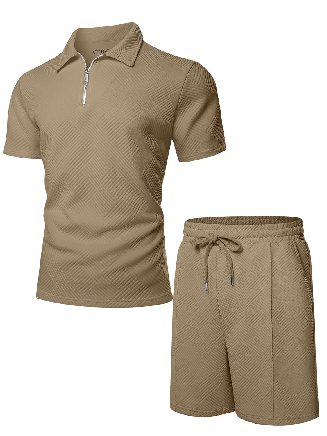 UOUA Mens Summer Track Suits 2 Piece Shorts Sets Short Sleeve Sweatsuit Outfits 1/4 Zip Golf Polo Shirts Loungewear